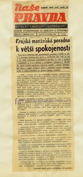 Poradna začala nabízet odbornou pomoc manželským párům a snoubencům v roce 1972 pod názvem Manželská a předmanželská poradna. Služby byly tehdy zaměřeny především na mladá manželství a na páry před vstupem do manželství ve smyslu prevence a překonávání prvních vývojových krizí. Během své existence poskytla Poradna prostřednictvím svých odborných pracovníků pomoc a radu již mnoha tisícům klientů.